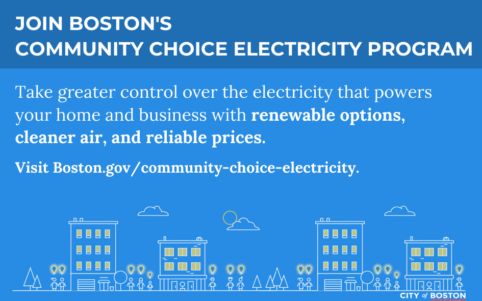 “Community Choice Electricity is a critical step of Boston’s Climate Action Plan, and will clean our air, lower greenhouse gas emissions, and stabilize electricity costs,” said Chris Cook, Chief of Environment, Energy, and Open Space. “CCE allows the community to make informed electricity choices, increases utilization of renewable energy, and helps protect vulnerable populations who are at the greatest risk from the climate crisis.”